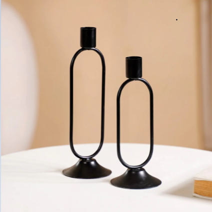 Custom made Decorative Candle Stand Black Finished Metal Candle Holders For Tabletop Decor Christmas Festival