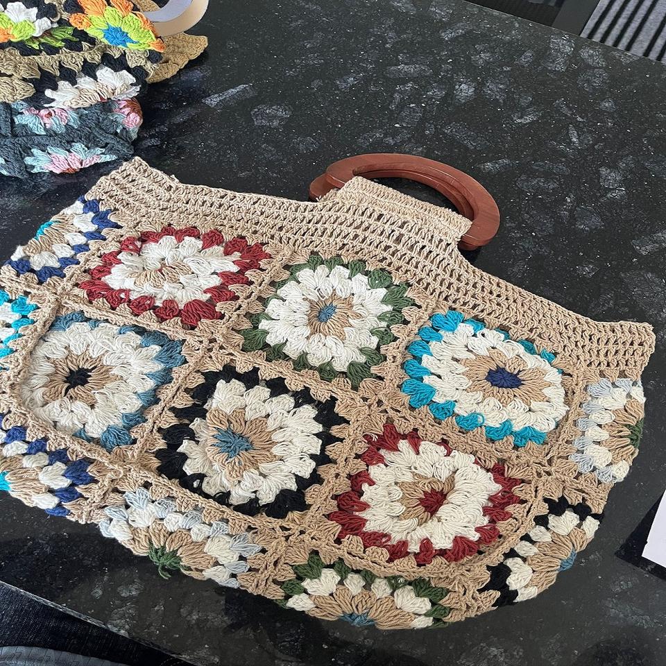 Custom made Handcrafted Cotton Macrame Crochet Bags with Wooden Handles. Ideal for a sling for beach outings