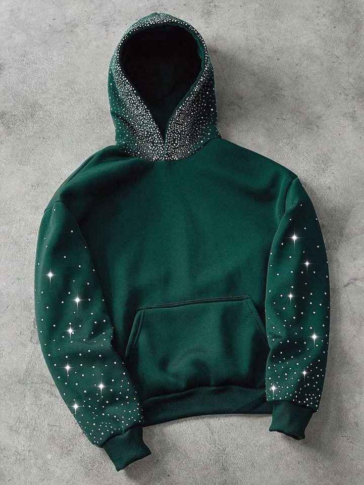 Custom made Loose Fit Zipper Hoodies For men Custom Screen Printed Logo Winter Heavyweight Zip Up Men's Rhinestones Hoodie
