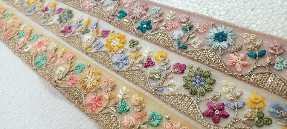 Custom Made Floral Embroidered Lace Trim Is Perfect Blend of Craftsmanship and Style. Ideal for Fashion Designer Wedding Planner