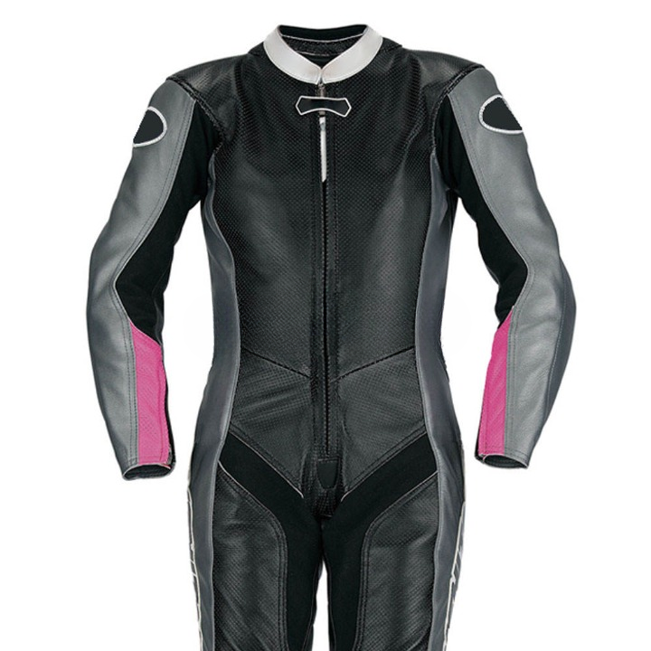 Custom made men leather motorbike suit racing motorcycle riding gear black grey pink protective biker one piece suits