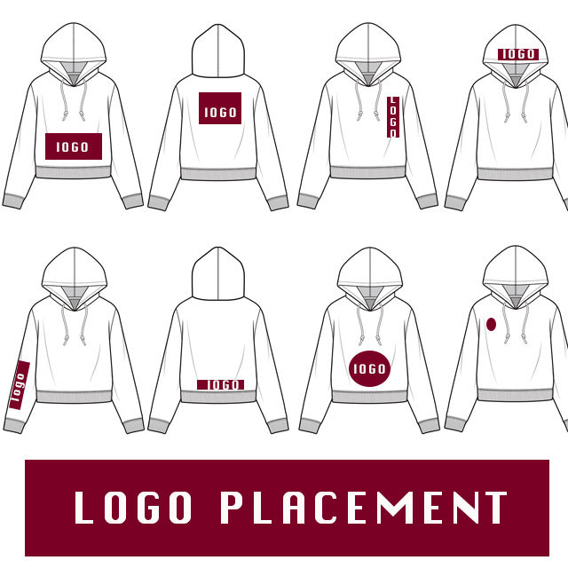 Logo position:Front, back, Left Sleeve, Right Sleeve, lower hem, back neck