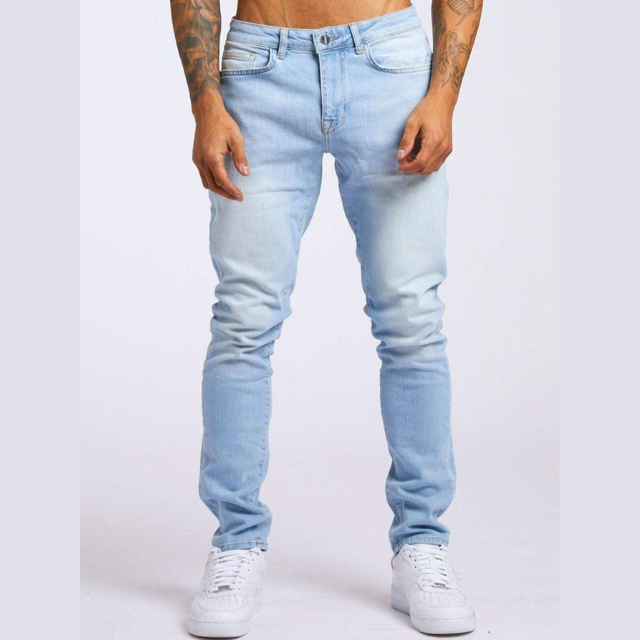 Custom men denim jeans high quality brand autumn solid high waist slim fit straight Denim jeans pant
