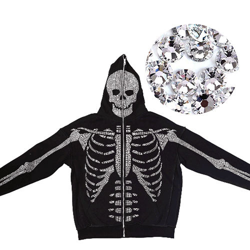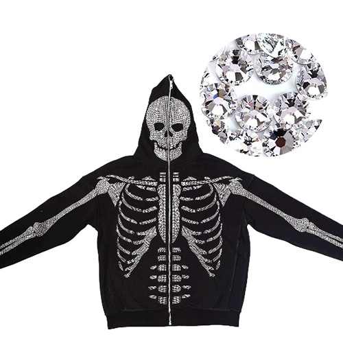 Custom Men Hoodies 100% Cotton Plus Size Skull Multicolor Crystal Hoodies Graffiti Streetwear Full Zip up Hoodie Rhinestone