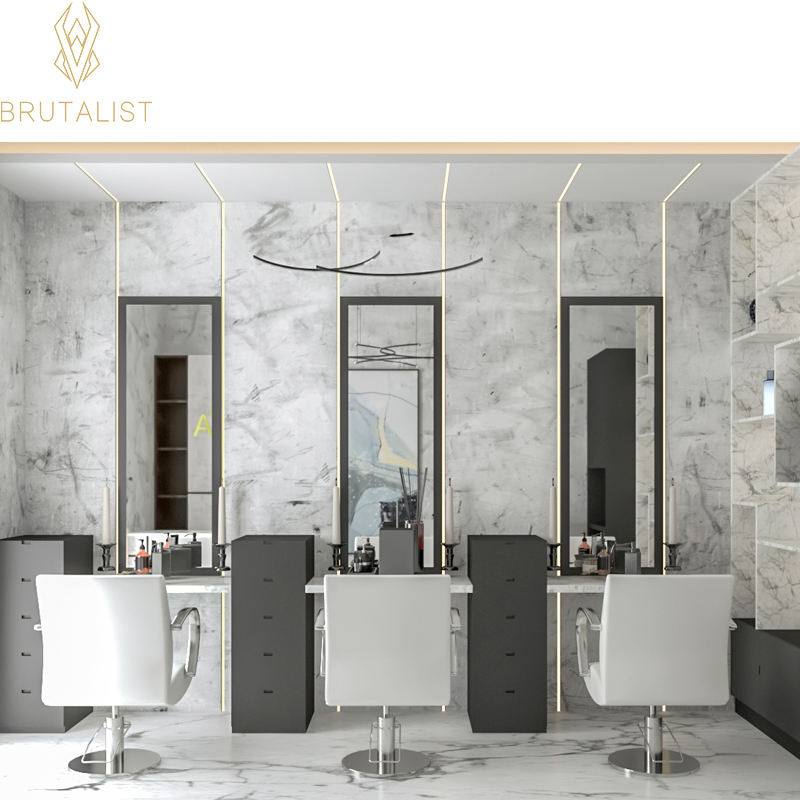 Custom Minimalist Style Barber Shop Furniture Station Beauty Salon Hair Salon Design with LED Lighting