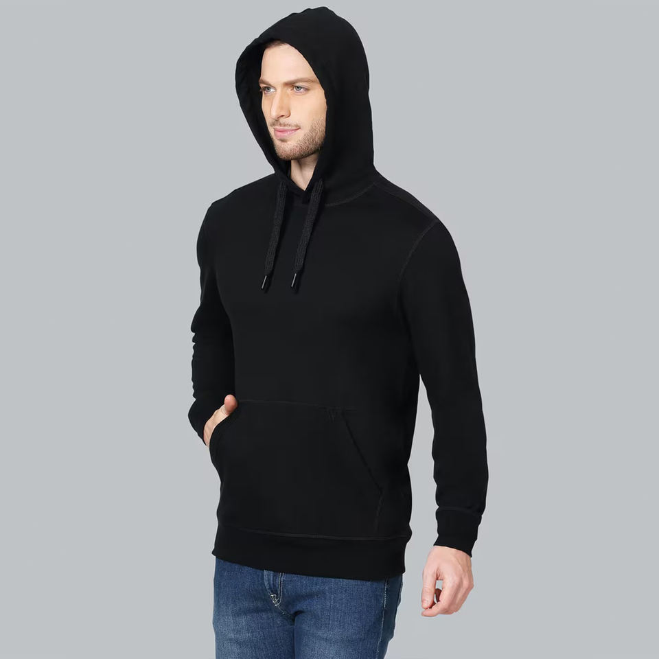 Custom plain black pullover hoodie unisex fleece long sleeve drawstring hood kangaroo pocket warm casual winter sweatshirts