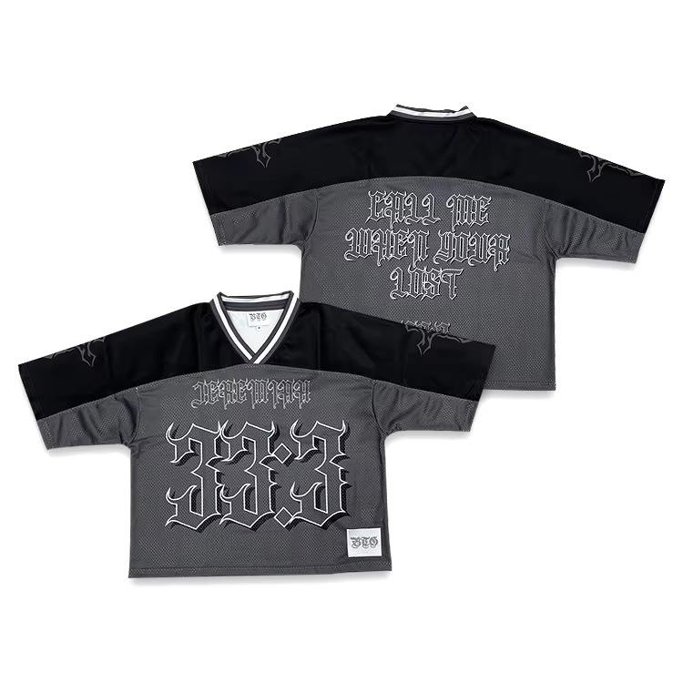 Custom printed Design Mens Crop Mesh Loose Football Jersey Polyester Fabric breathable sportswear classic regular fit t.shirs