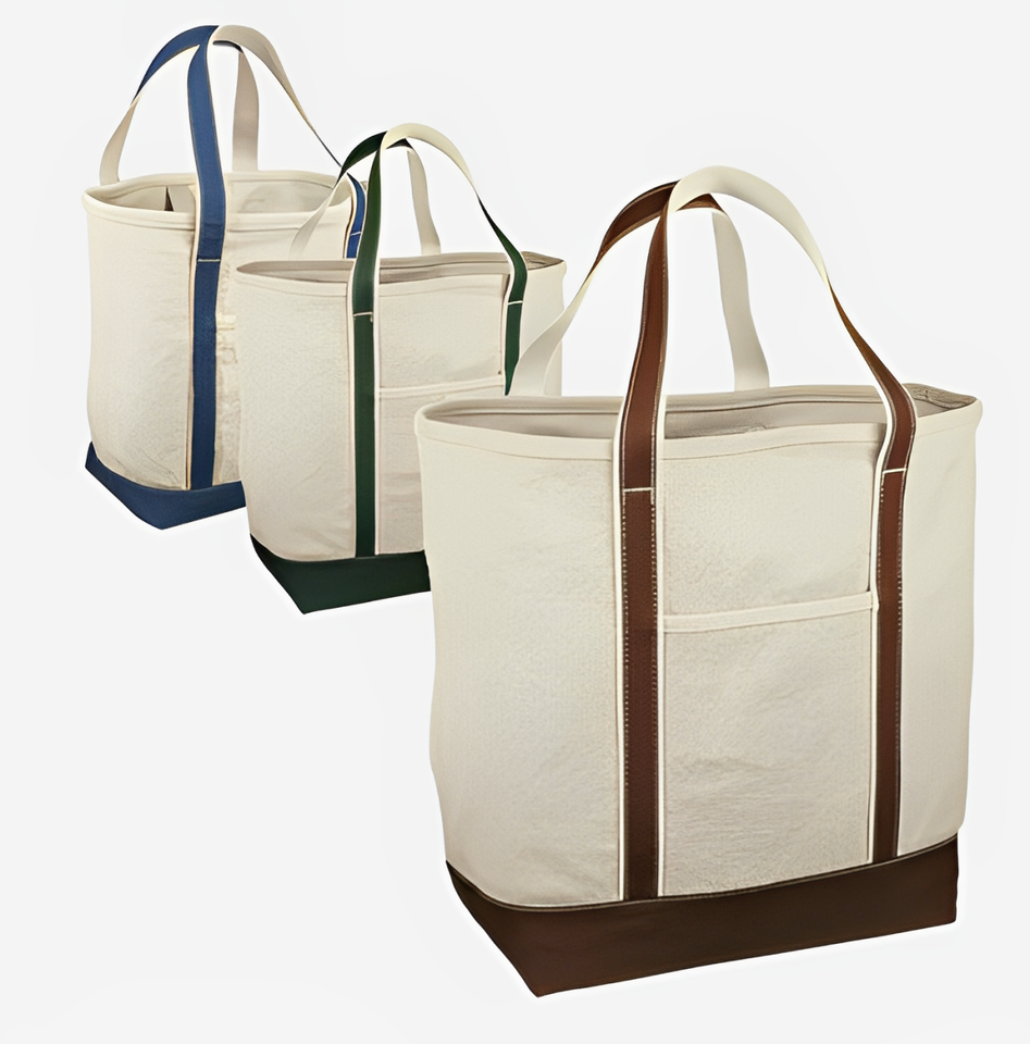 Wholesale Cotton Canvas Tote Bag with Long Colored Handles, Reusable Custom Boat Style Shopping Bag for Daily Use