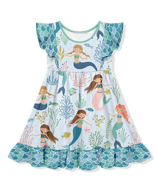 Custom rainbow Fish Patterning Design Girl Pearl Dress Angel-Sleeve Dress