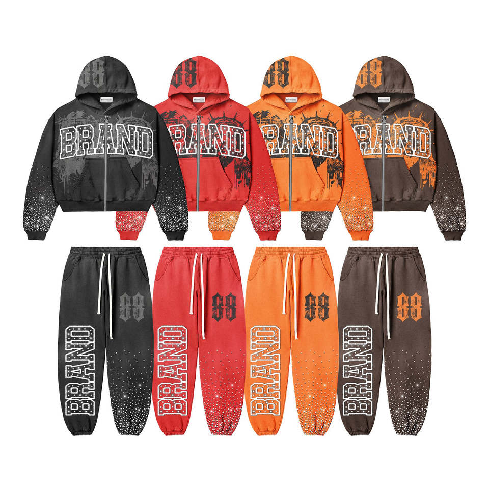 Keywords:Custom Rhinestone Hoodie Set