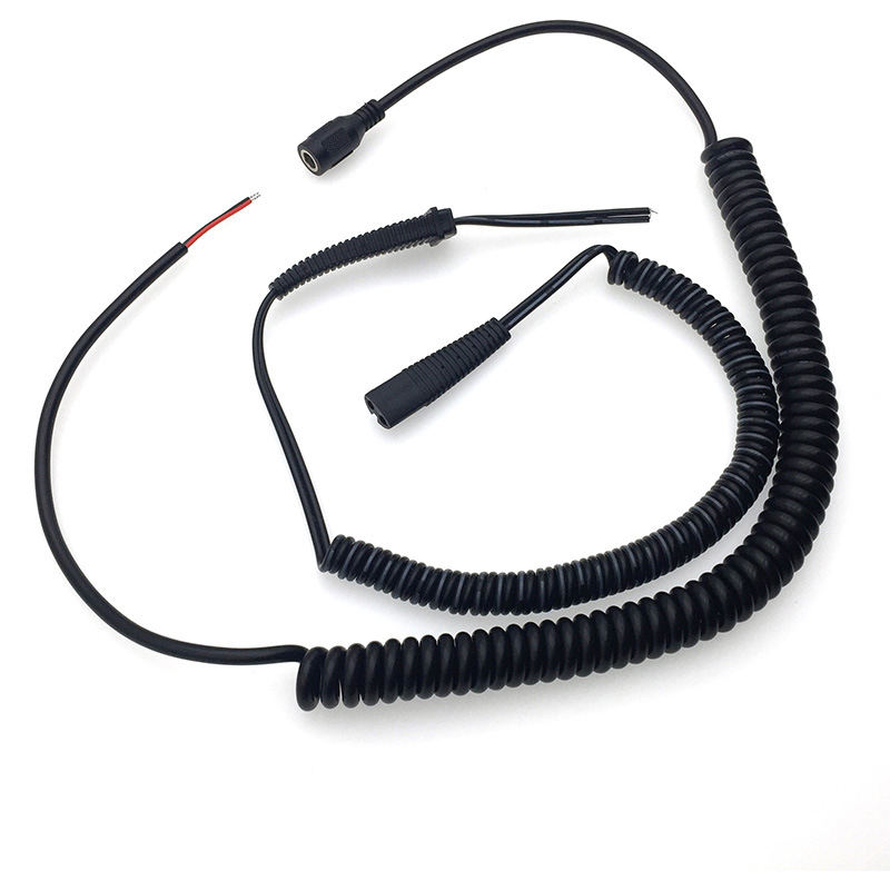 Custom spring coil 2-core cable DC 5.5*2.1 5.5*2.5 mm barrel jack Male/female power cable Screw power cable