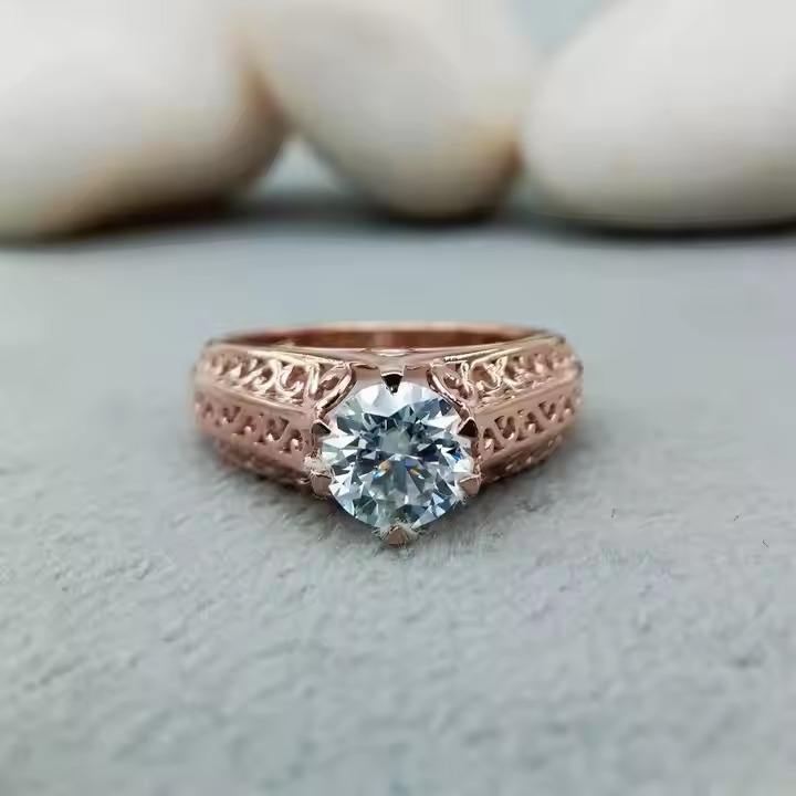 100% Satisfaction Guaranteed Custom unique Solitaire VVS Moissanite Gold 14k/ 18k Engagement Wedding Ring Trendy 925 Silver Set