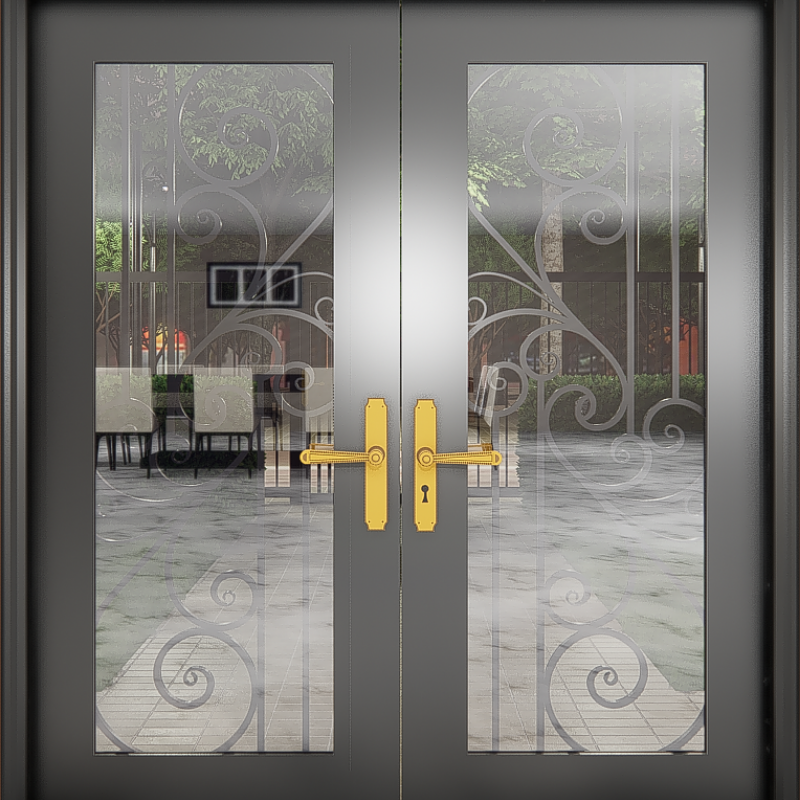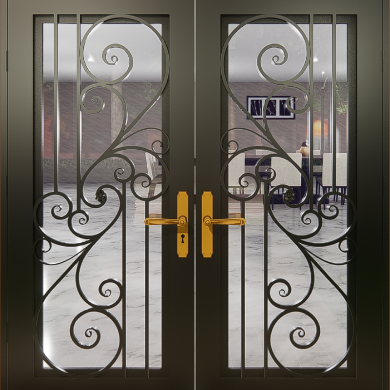 Custom wrought iron doors for house front entry, heavy duty steel security doors with sliding door design and smart lock