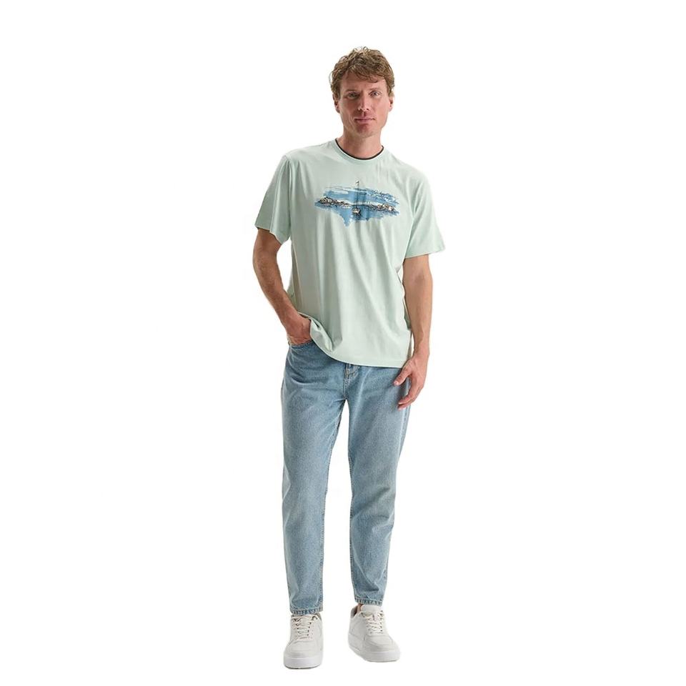 Customer Favorite Summer Beach Graphic Tee Shirts Custom Printed Pastel Blue Cotton Mens T-Shirt 100% Cotton for Daily Use