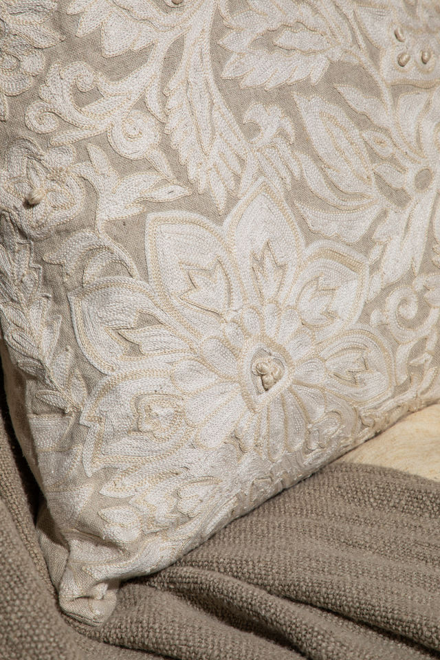 Customisable Artisan Light Luxury Cotton Linen Pillow Cover Traditional Aari Embroidery Ethnic Multi-Tassels Floral Washable