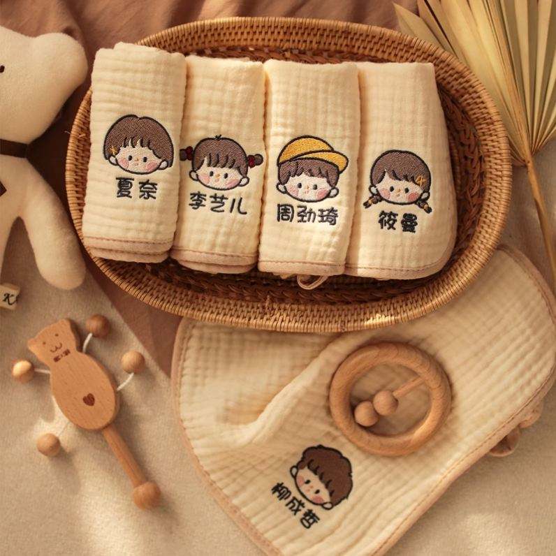 Customisable Handkerchief Kindergarten Personalised Muslin Small Square Towel Baby Pure Gauze Cotton Washcloth