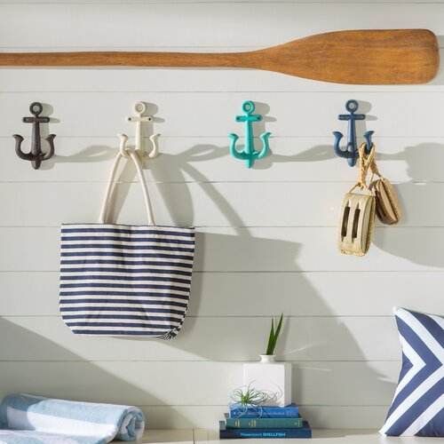 Customisable Modern Eco-Friendly Detachable Set of 4 Iron Metal Anchor Wall Hooks for Coats Jackets and Home Decor