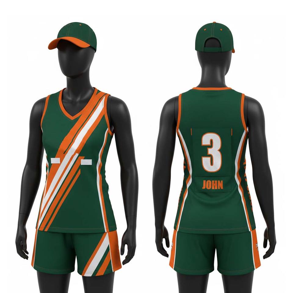 Customise Sublimation Printed Sports Wear Latest Netball Dress Skirts Girl Round Neck Netball Uniform Green Designs