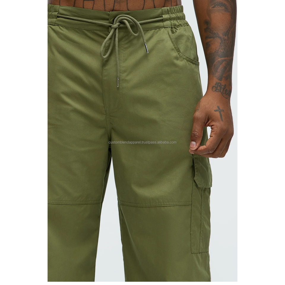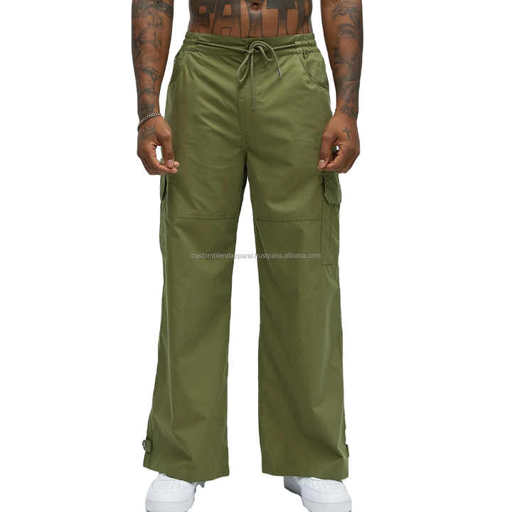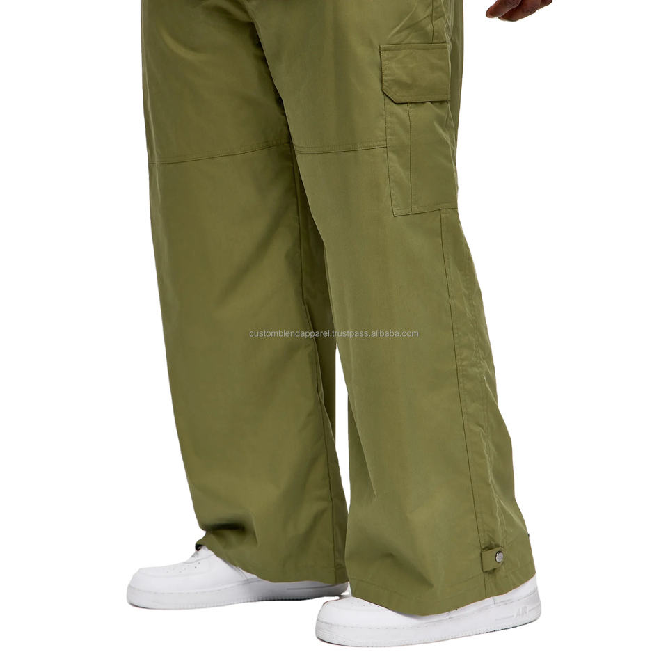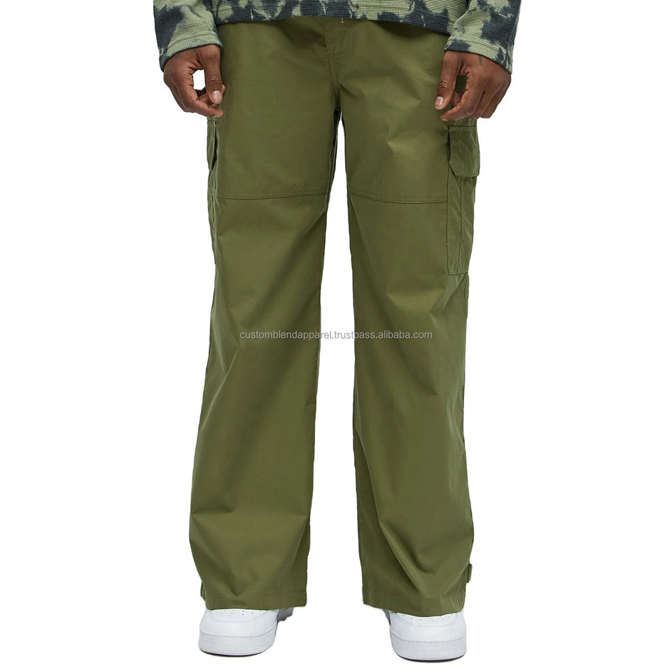 Customised Embroidered Breathable Streetwear Mens High Selling Nylon Cargo Trackpants Wide Leg Straight Fit Outdoor OEM