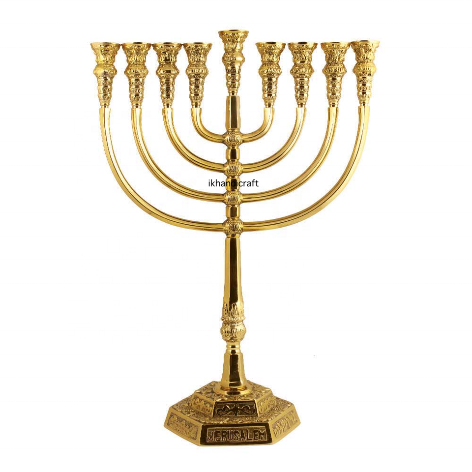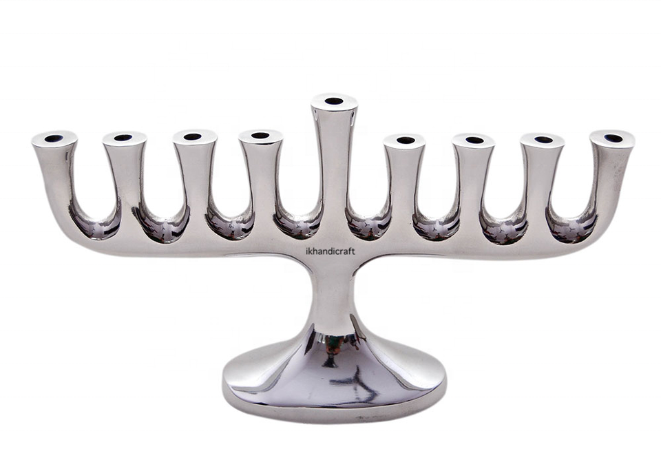 Customised Judaica Metal Menorah Chanukah Candle Stick Holder in Brass Nickel Finish Best for Table Direct From India Handmade