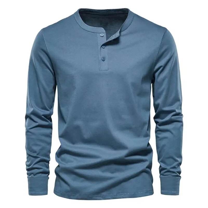 Oem Service Round Neck Cotton Men t Shirt Loose High Quality Blank Button Henley Custom logo Long Sleeve Men t Shirt