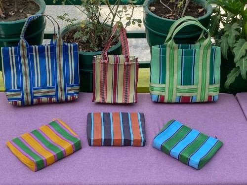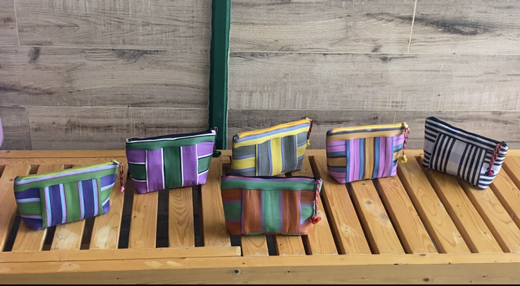 Recycled Nylon Striped Pattern Cosmetic Pouch