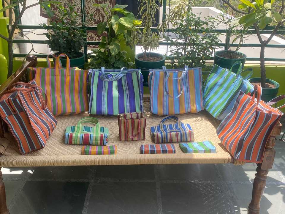 Product name:Recycled Nylon Striped Pattern Cosmetic Pouch
