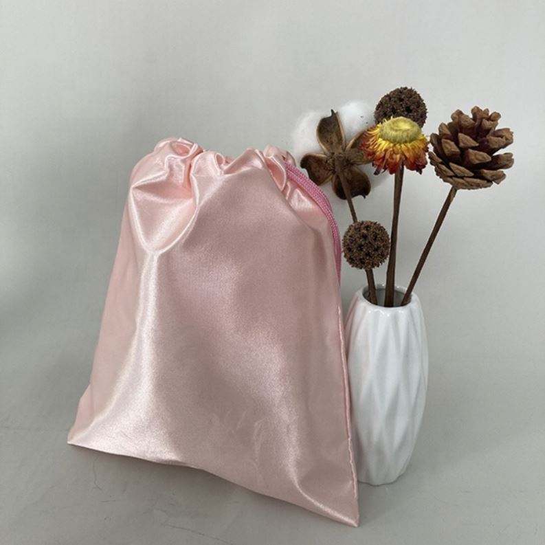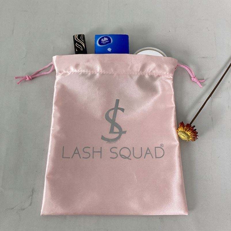 Customised Silk Satin Drawstring Bucket Bag Custom Logo Small Satin Lash Silk Drawstring Bag Satin Bags Custom Logo Drawstring