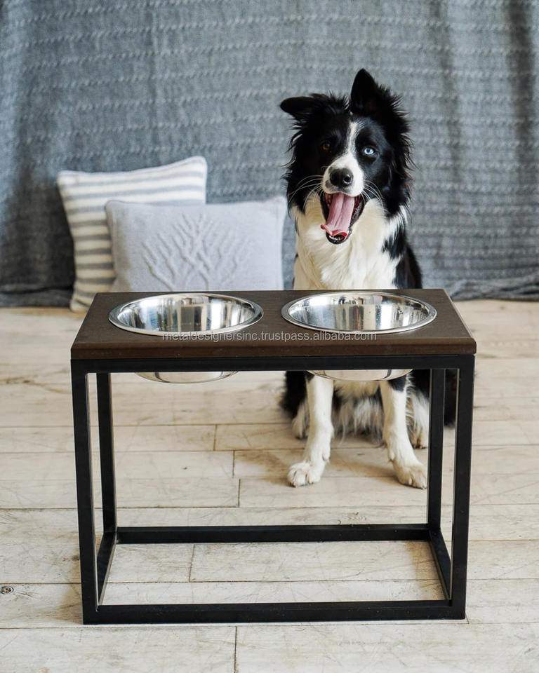 Customised Tall Dog Feeder Wooden Elevated Steel Bowls with Stainless Steel Bowls Metal Tube Stand for Big Dogs for Pets Feeding