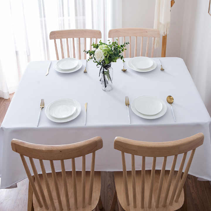 Customised White Rectangle Polyester Wedding Tablecloth Oriental Touch Restaurant Party Cover Home Use Square Woven Custom