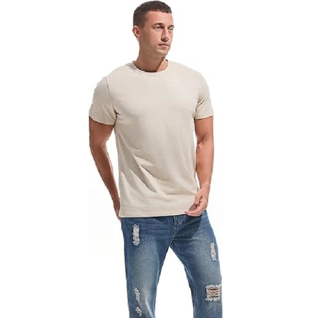Customizable 100% Cotton Beige Color Round Neck Regular Fit Men's Short Sleeve T-shirt With Best Factory Price From Bangladesh