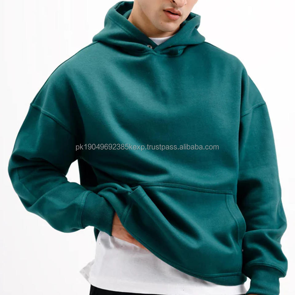 Customizable 100% Cotton Fleece Hoodie for Men Solid Pattern Heavyweight Pullover Sweatshirt with Oversized Hood for Winter