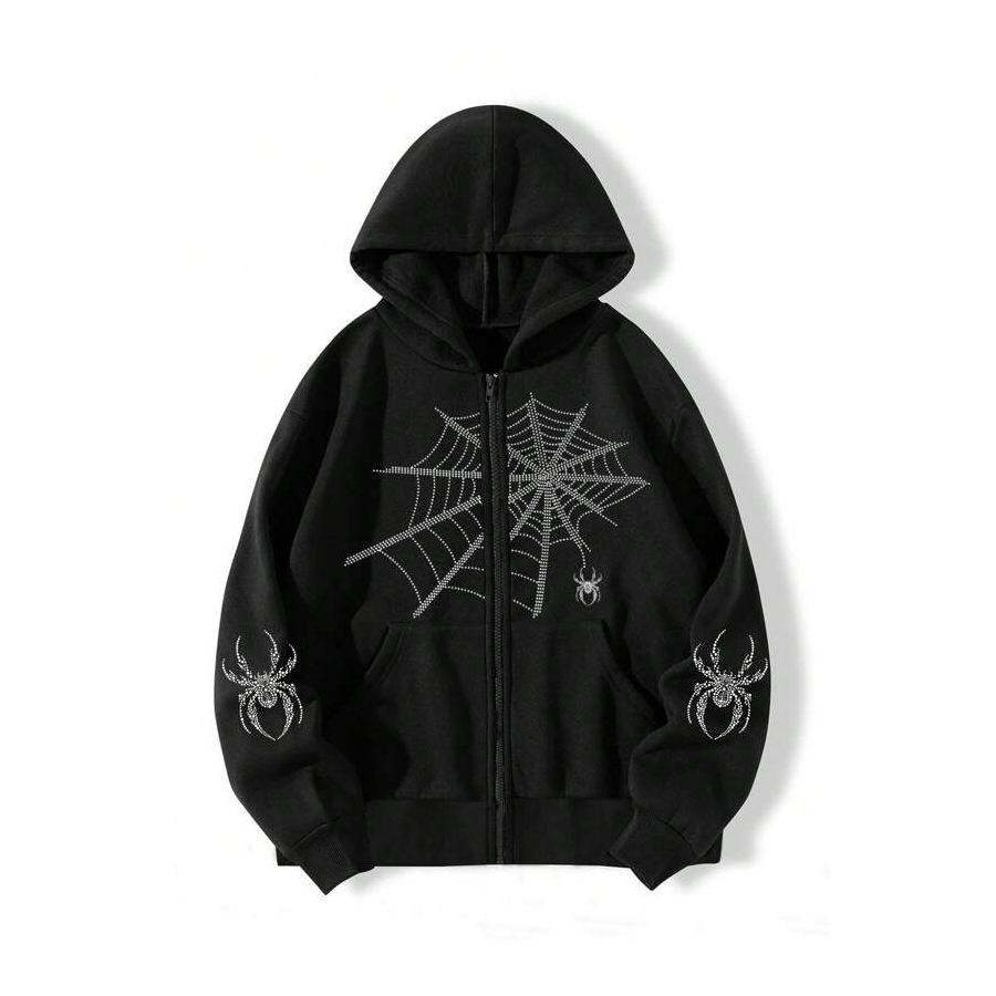 Customizable 100% Cotton Men's Heavyweight Zipper Hoodie Solid & Screen Printed with Rhinestones for Autumn