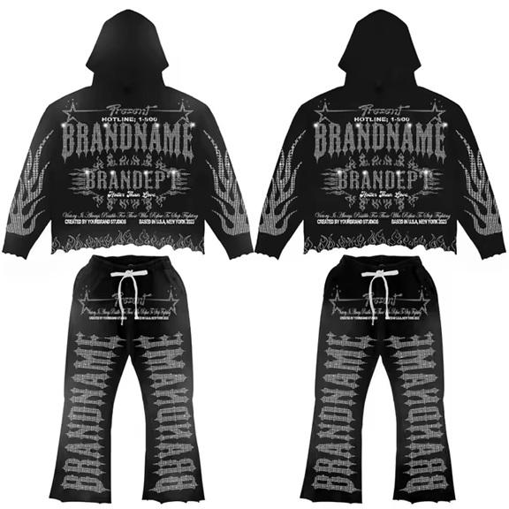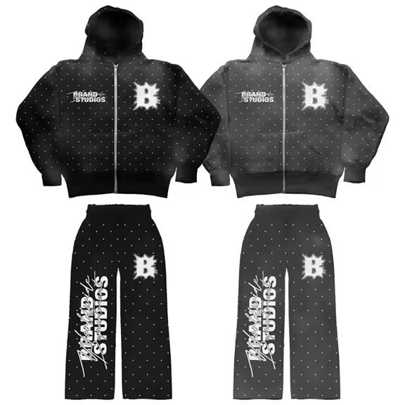 Customizable 100% Cotton Winter Season Track Suit Rhinestone DTG Print Breathable Lightweight Eco-Friendly Seamless Sets Solid