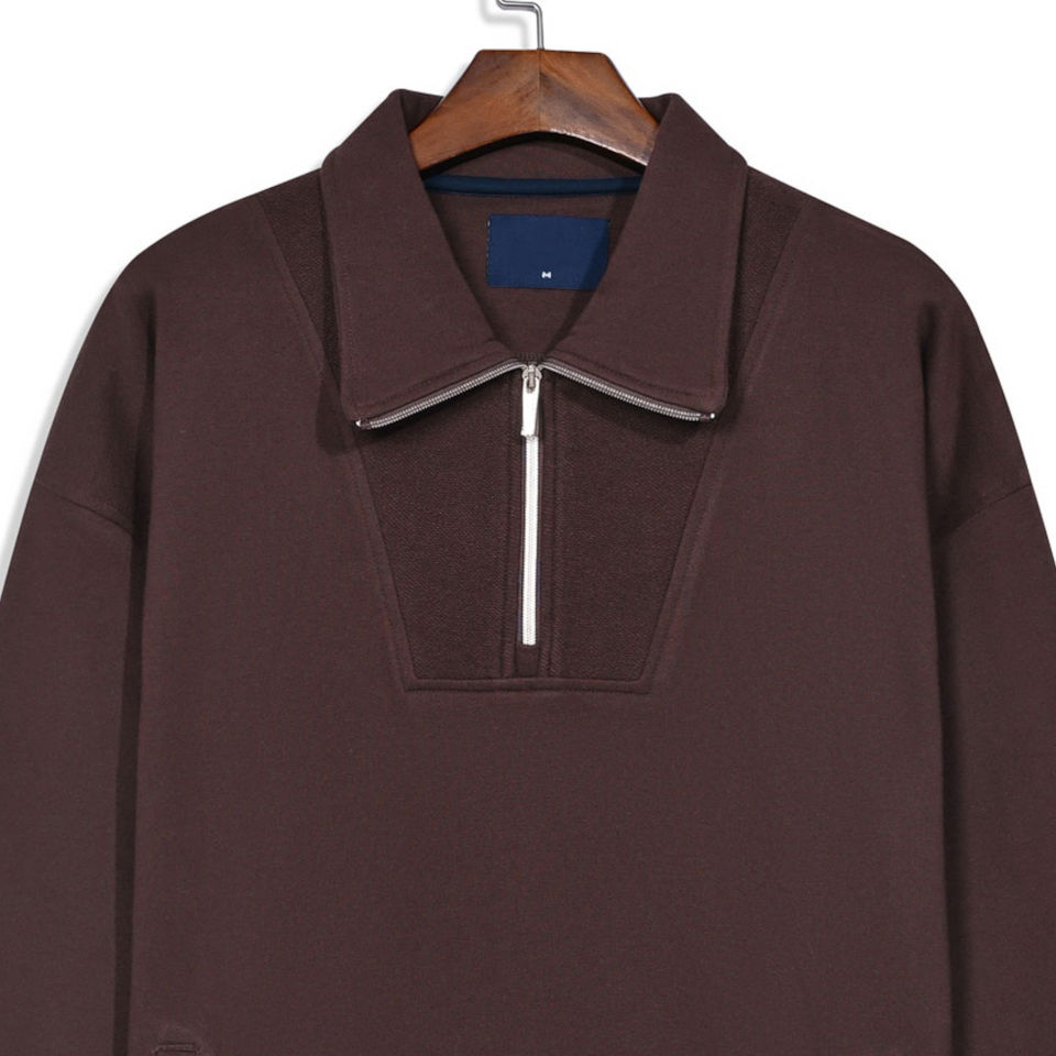 Customizable 100% High Quality Brown Nylon Close-End Auto Lock Invisible Top Half Zipper Relax Fit Mock Neck Full Sleeves Home