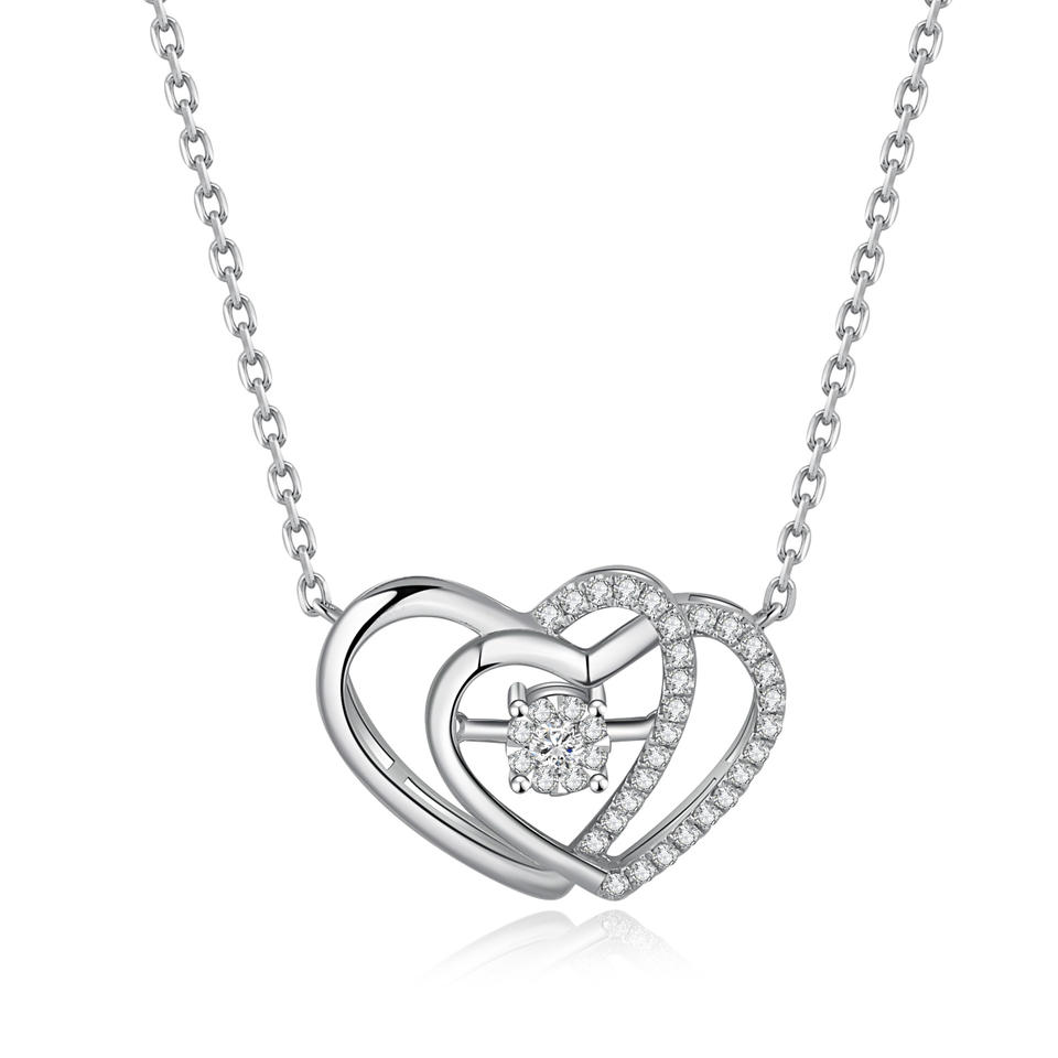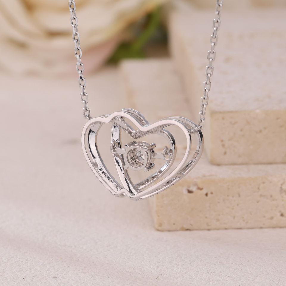 Customizable 18K Solid Gold Double Heart Pendant Necklace with Natural Diamond Link Chain Daily Wear Gift From Manufacturer