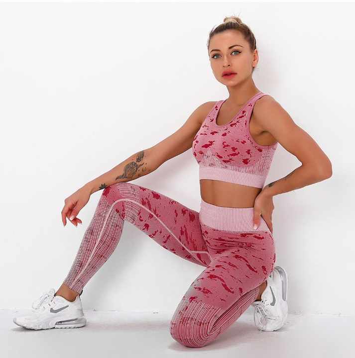 Customizable 2022 Camouflage Stripes Gym Wear Breathable Seamless Knitted Yoga Leggings Set 3pcs Yoga Gear