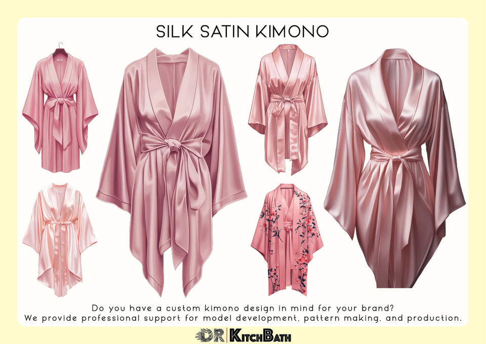 Customizable 22 25 30 Momme 6A Grade Mulberry Silk Satin Kimono OEM Elegant Luxury Beaded Floral Front Summer Geometric Thermal