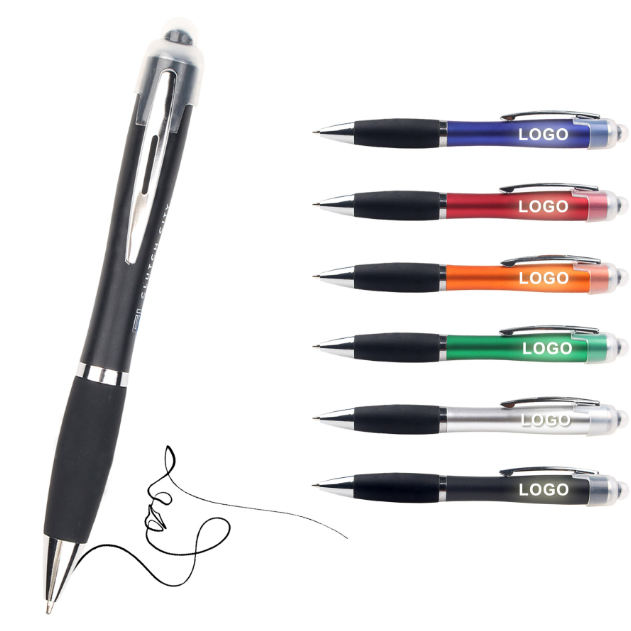 Customizable 3-In-1 Multi-Functional Stylus Led Ballpoint With Engraved Logo Promotional Stock Light up Pen