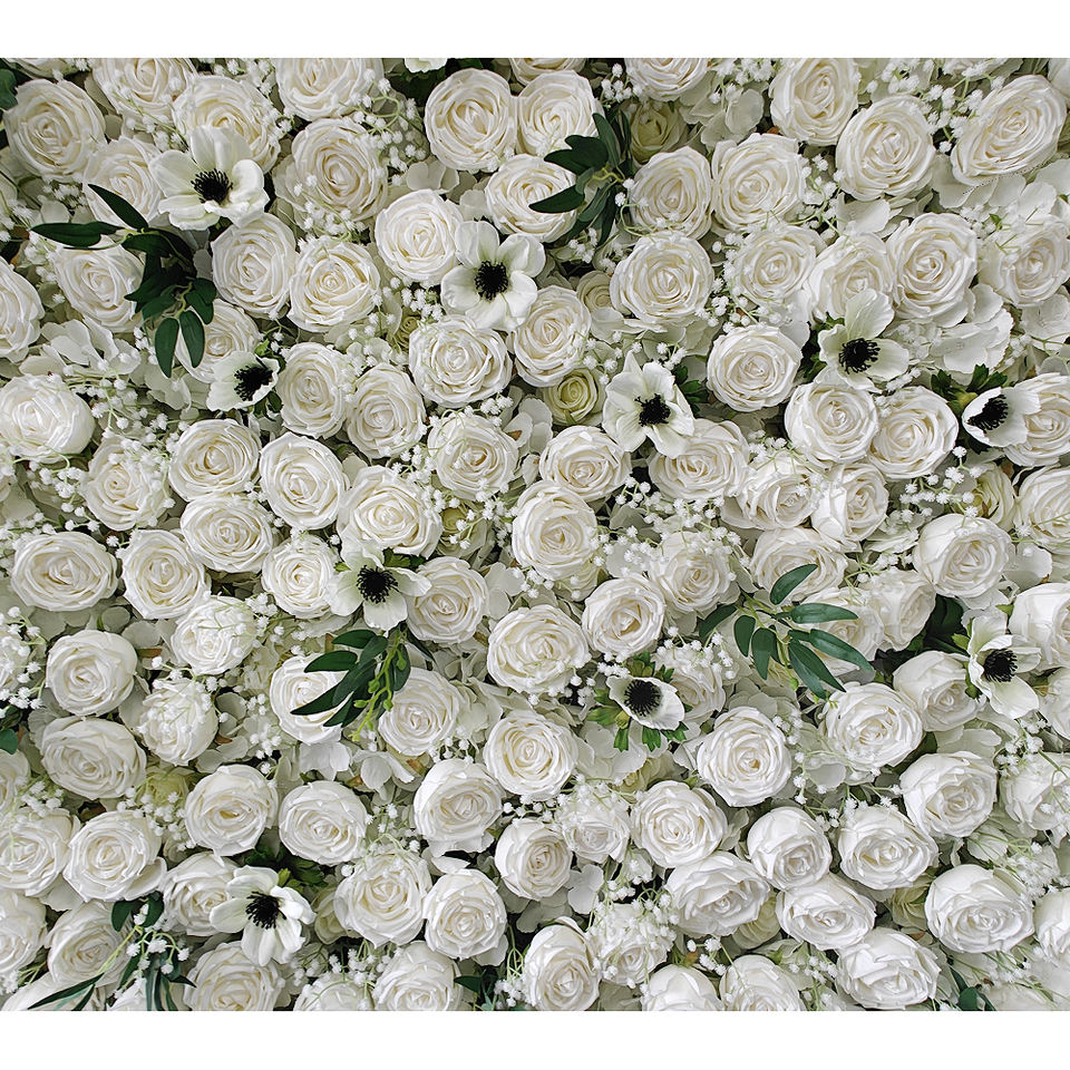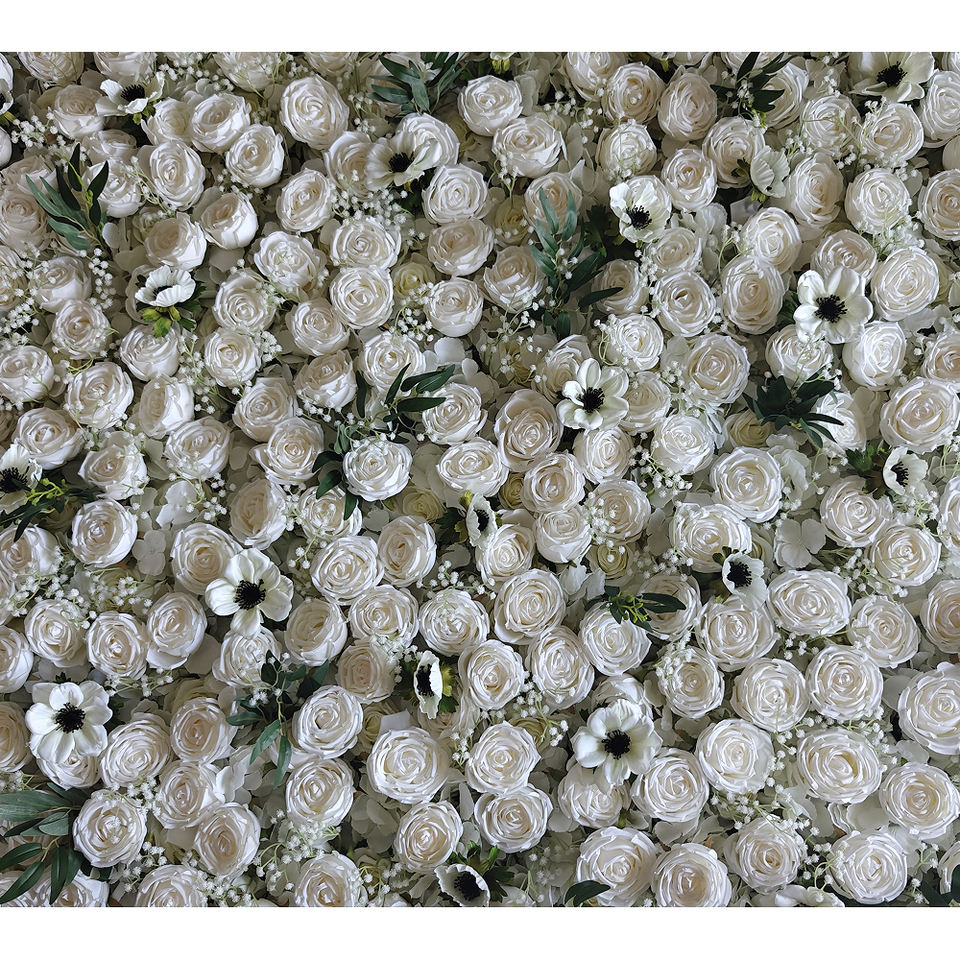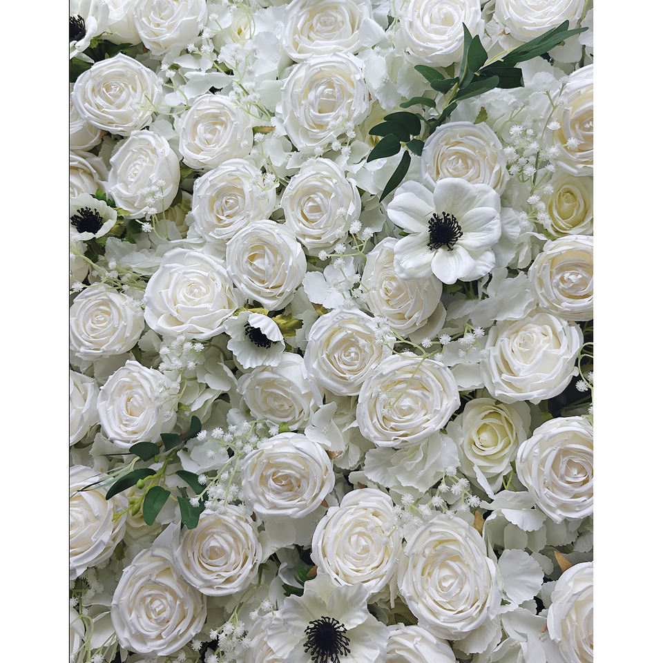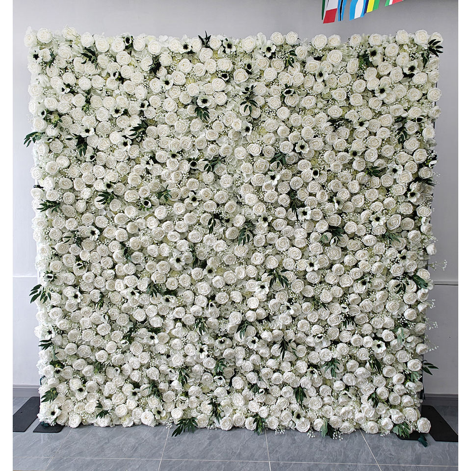 Customizable 3D Fabric Wedding Flower Wall Backdrop 8ft X 8ft Mixed Flowers White Rose Handmade Eco-Friendly Artificial Flower