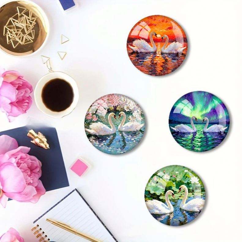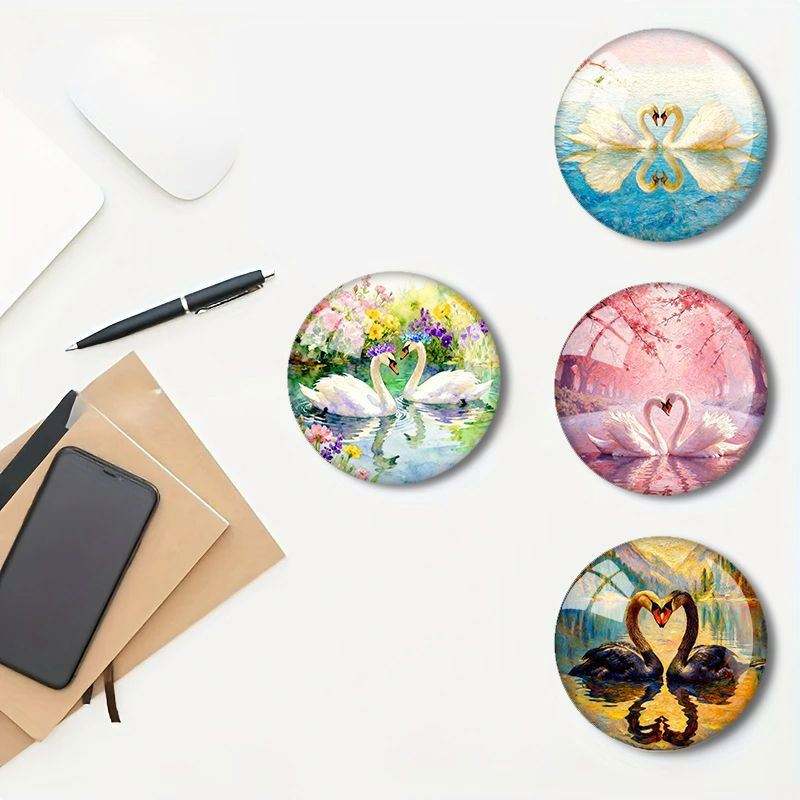 Customizable 40mm Round Glass Refrigerator Magnet Wholesale Swan Refrigerator Sticker