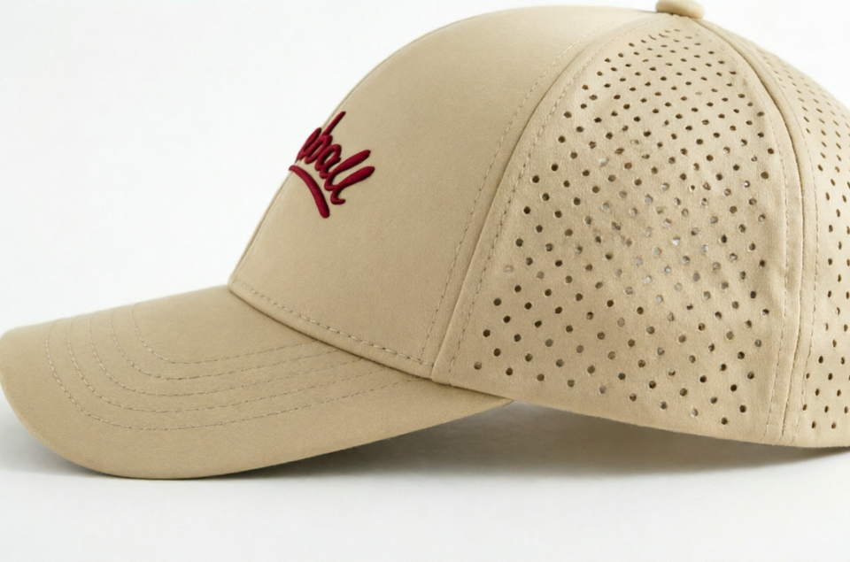 Customizable 6-Panel Baseball Cap Features Exquisite Embroidery Laser-Cut Mesh Unisex Adjustable Snap-Back Baseball Cap