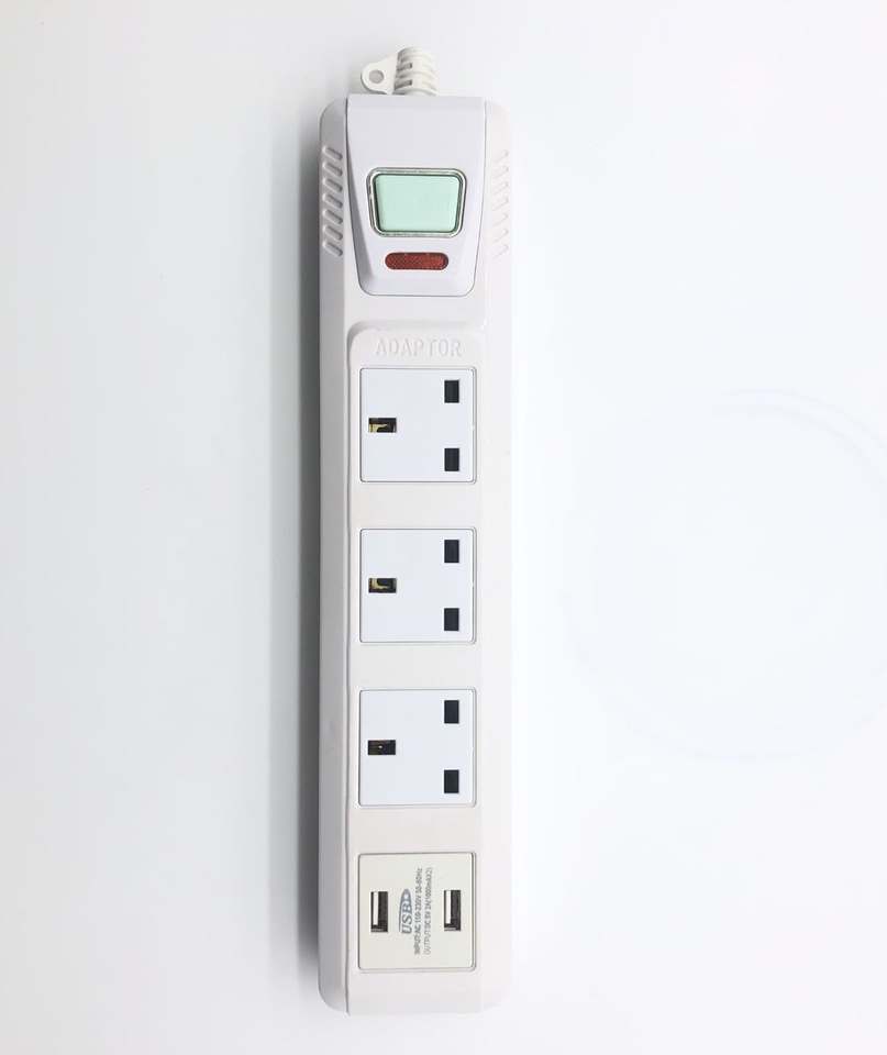 Customizable 6-Way UK/British Plug Extension Socket with Centre Button Fire Retardant Material 3250W Max Power 13A Rated Current