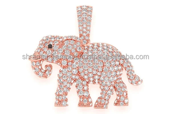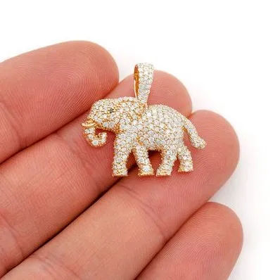 Customizable 925 Silver Yellow Gold Plated Pendant Necklace Hip Hop Style Iced Natural Elephant Lab Grown Diamond Fine Jewelry