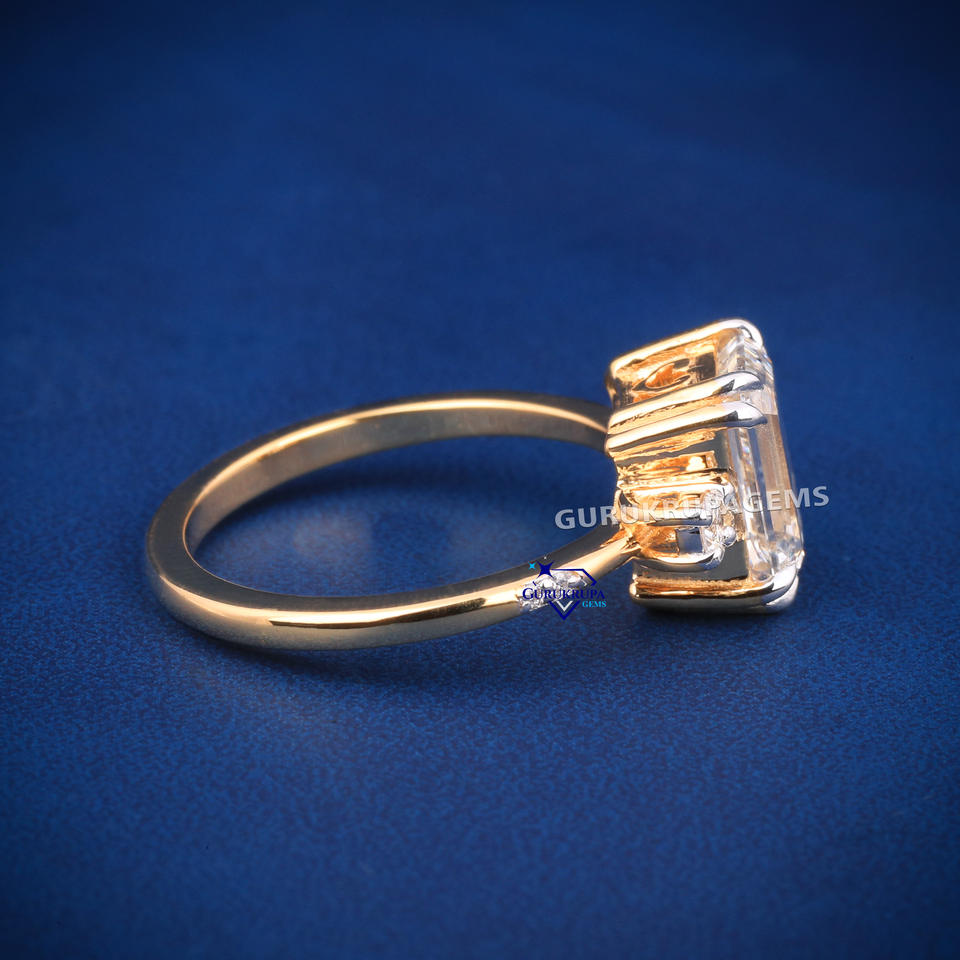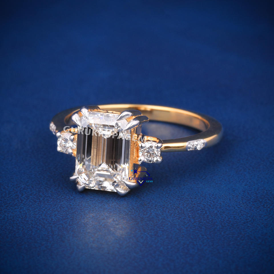 Customizable 925 Sparkling Silver Emerald and Round Cut Moissanite Diamond Engagement Ring Trendy Style Women Wedding Gift Party