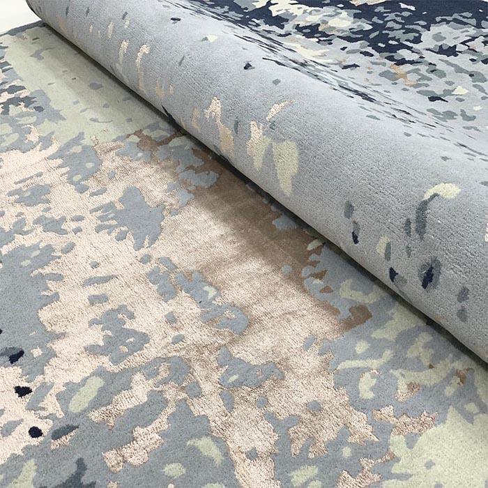 Customizable Abstract Top Quality Super Soft Durable Navy Grey Sand Colors Silk NZ Wool Handwoven Colors Design Size Rug Carpet
