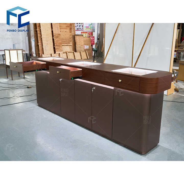 Antique Wooden Jewelry Store Reception Desk Customizable Practical Negotiation Table with Glass Showcase for Display