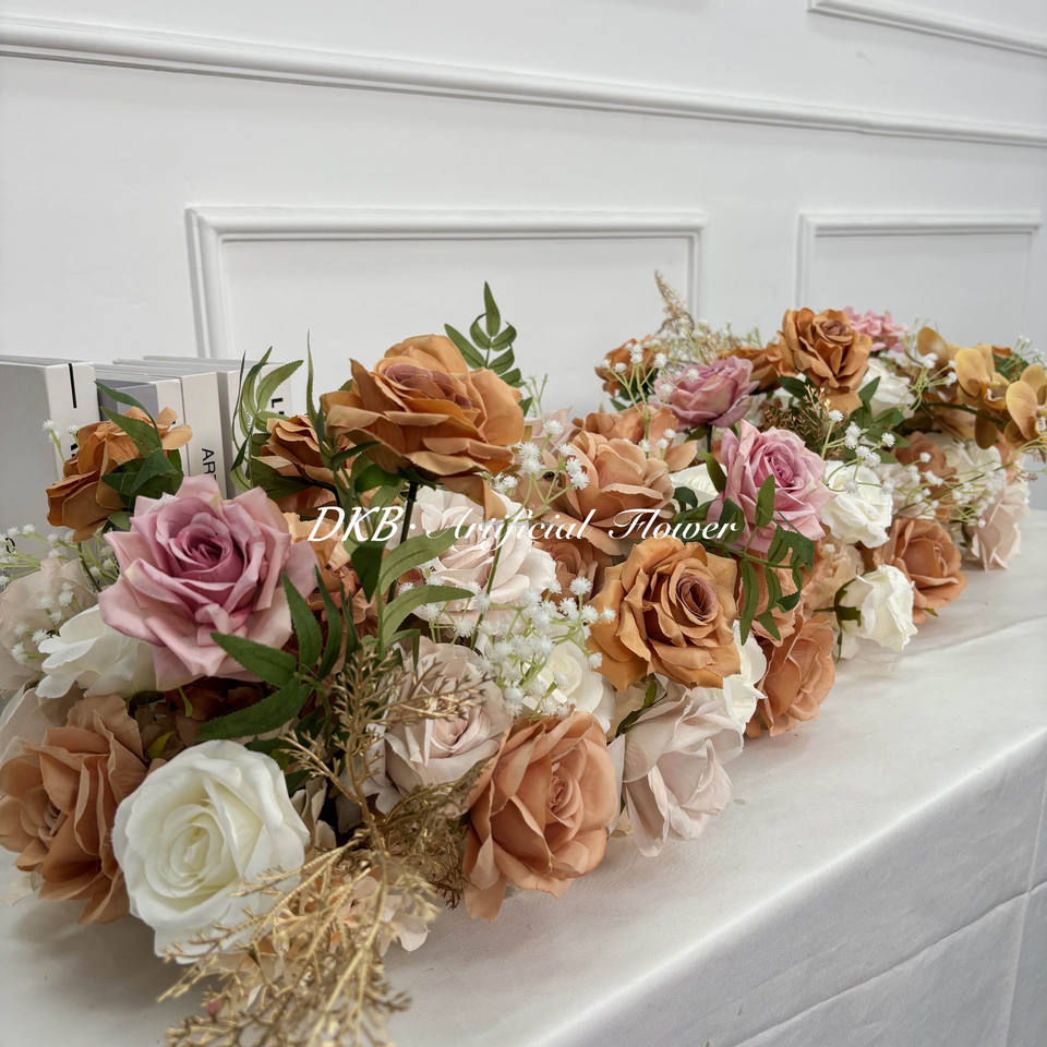 Customizable Artificial Flower Table Runner Floor Silk Flower Row Wedding Decoration Road Guide Wedding Arch Fower Row