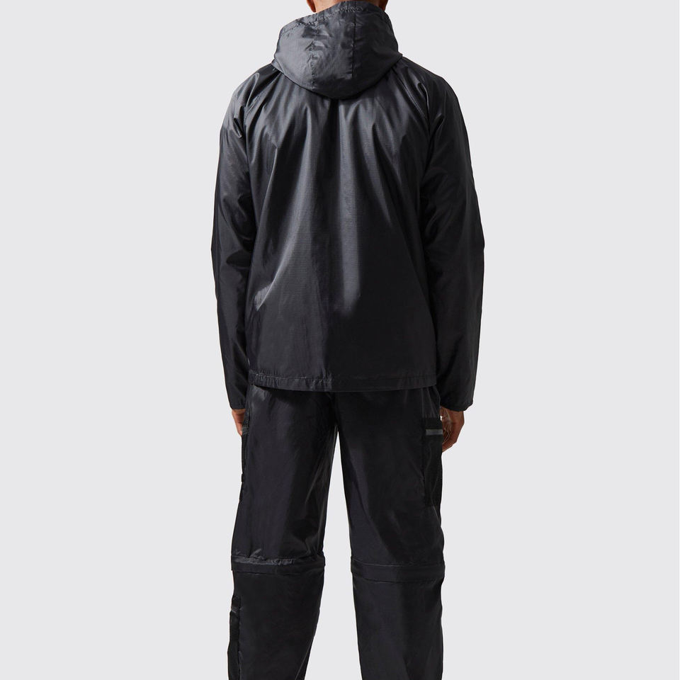 Customizable Black Ripstop Raglan Windbreaker Jacket with Hood - Active Style Long Sleeve Outerwear for Men