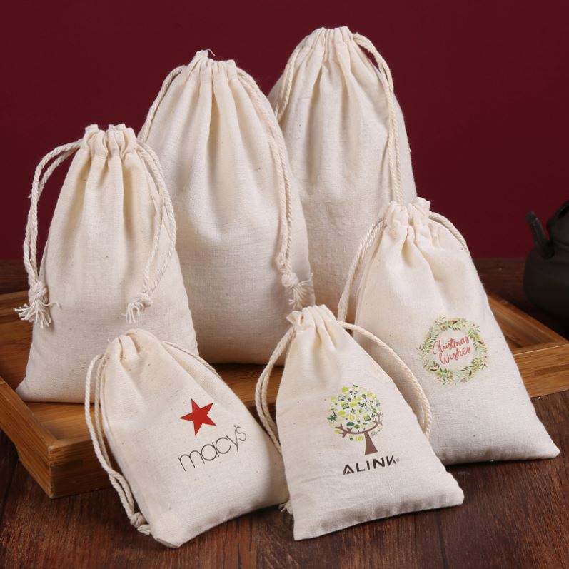 Customizable Canvas Cotton Double String Handbag Shoe Dust Drawstring Bag Recyclable Eco-Friendly for Food Snack Packaging Logo